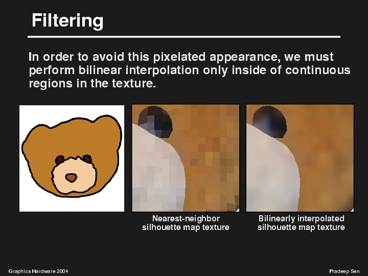 left. If we don't filter at all, we get the pixelated result we saw earlier,