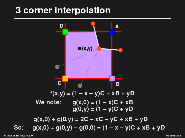 The interpolation function we want to perform is shown here as f(x,y), and is