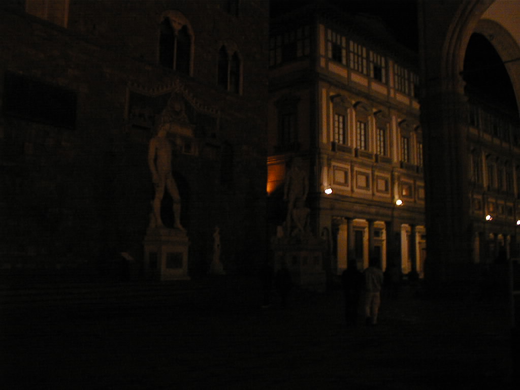 Lights reflect off the Arno River from the Ponte Alle Grazie