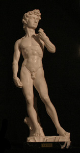 Our replica is not for sale to the public, though eventually it will be. Meanwhile, our 3D models can be studied using the ScanView protected rendering system described here. The particular model of David embedded in ScanView is the same one used to generate the replica shown in the figure, with the exception of some small, inconspicuous modifications we made to each model, effectively watermarking them to identify illegal copies.
