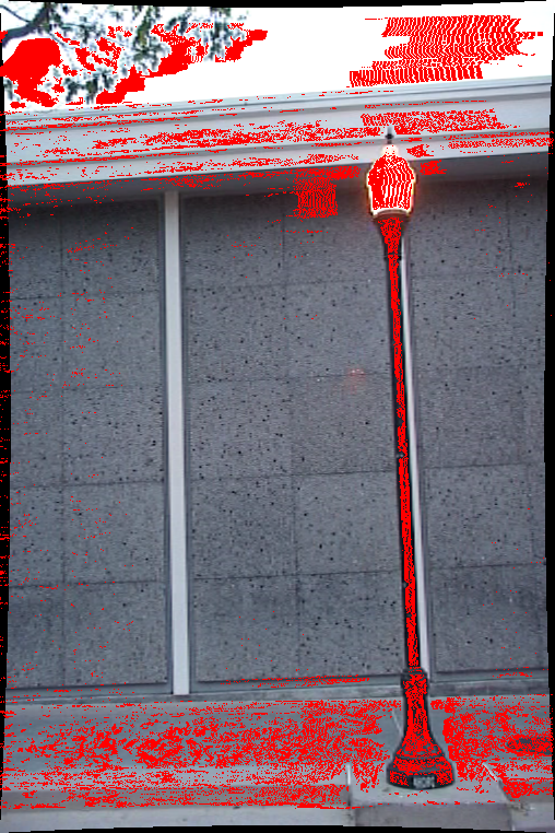 We also tried some combinations of both variance and laplacian. Note that we do not have any scale information between them so they are impossible to combine in a rigorous sense. Taking union of the two operations is one option, this improves the matte for the pole but we also get a big halo around the pole and lot more noise compared to pure variance. Taking the intersection of the two was also not very useful, because of the contradictory nature of the two operators. Though the noise cancelled out, we got a worse matte for the pole. In conclusion, the variance combined with image morphological operation of growing the matte does a good job of removing the pole and hence we use variance as our focus operator.