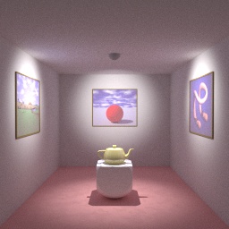 Path tracing with 50 samples per pixel and noise reduction filtering. Less visible noise...