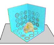 Another approach is to completely automate camera registration. One example of this was demonstrated in the Lumigraph [3], by Steven Gortler et. al. They used a backdrop painted with circles. These visual markers enabled the program to calculate the position and orientation of the camera, without user interaction: