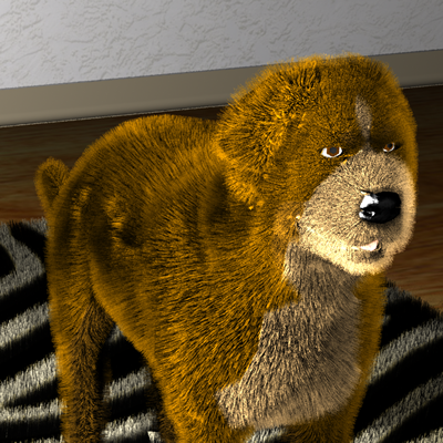 To achieve our goal of rendering realistic animals, we enhanced our fur model so that it could look brushed or messy, have its color vary across surfaces, and have different lengths on different parts of the animal.