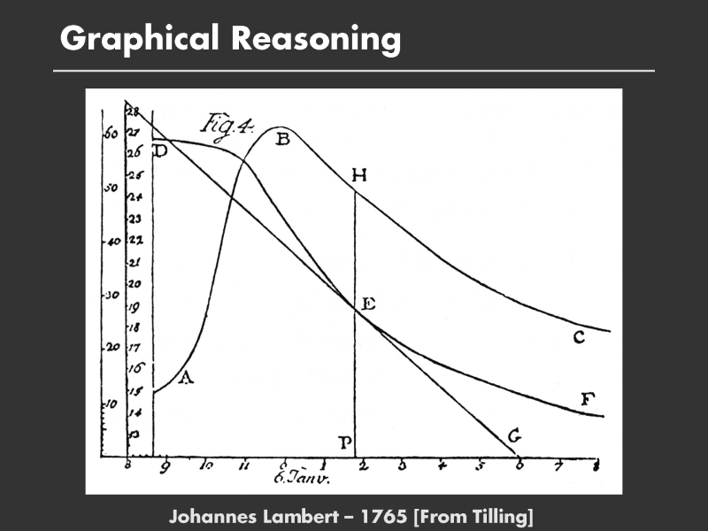 Here is what I think is one of the most important scientific visualizations of all time. It was made by Lambert, someone whose work I know well since he also founded the geometric study of photometry and radiometry ? the science of light measurement. I have studied his great book Photometria (1769) and translated several of his discoveries into computer graphics algorithms; it was an easy way to write a lot of SIGGRAPH papers.