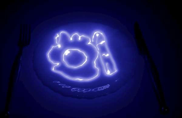 | This meets requirement # 2 - painting with light. I used a red laser pointer and drew the shape of an egg and a sausage on an empty white plate. The room was dark. I set my camera on a tripod. The exposure was 10s and aperture was f/10. |