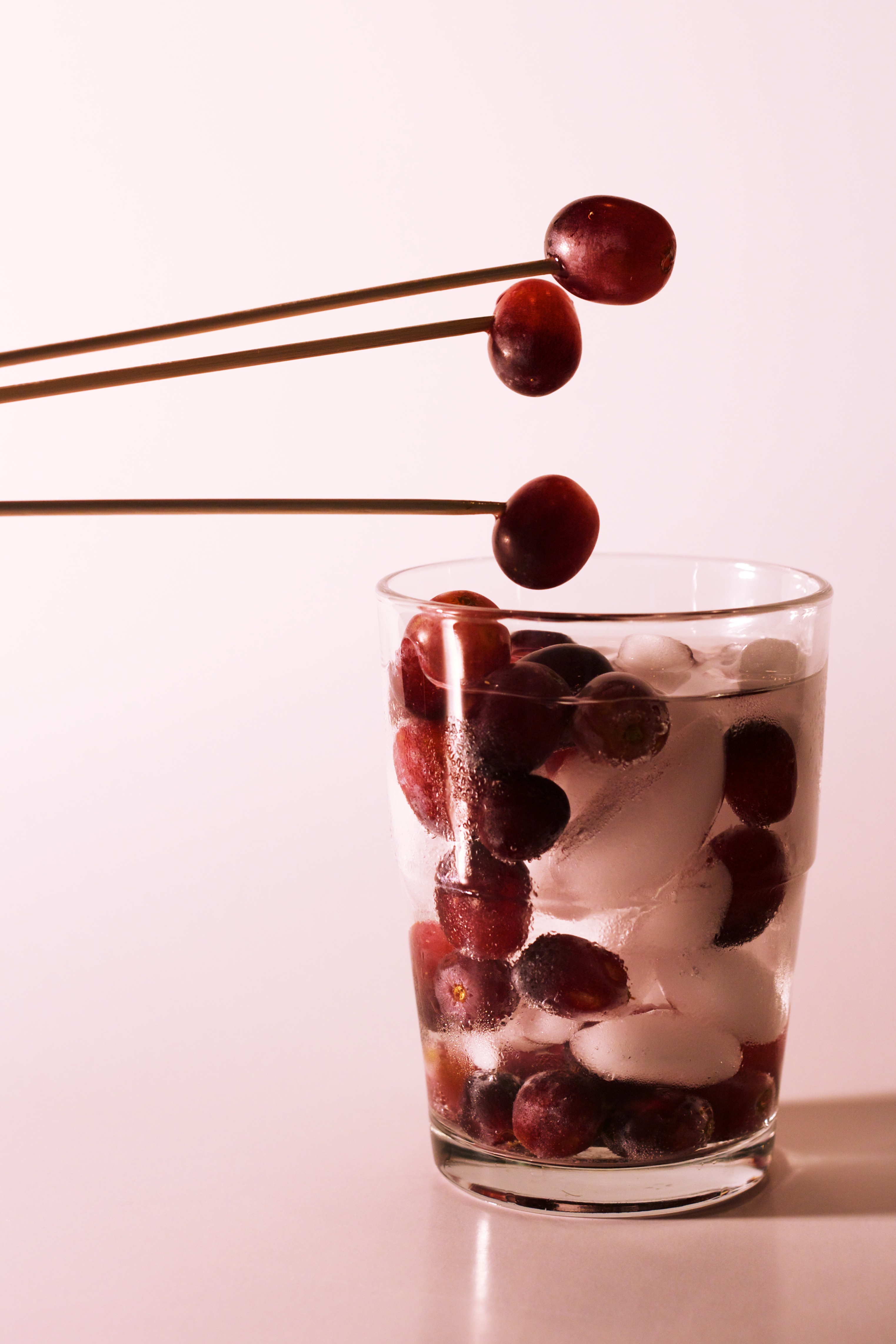 The setup for levitating objects (prev photo). Used 3 skewers to hold the grapes in place.