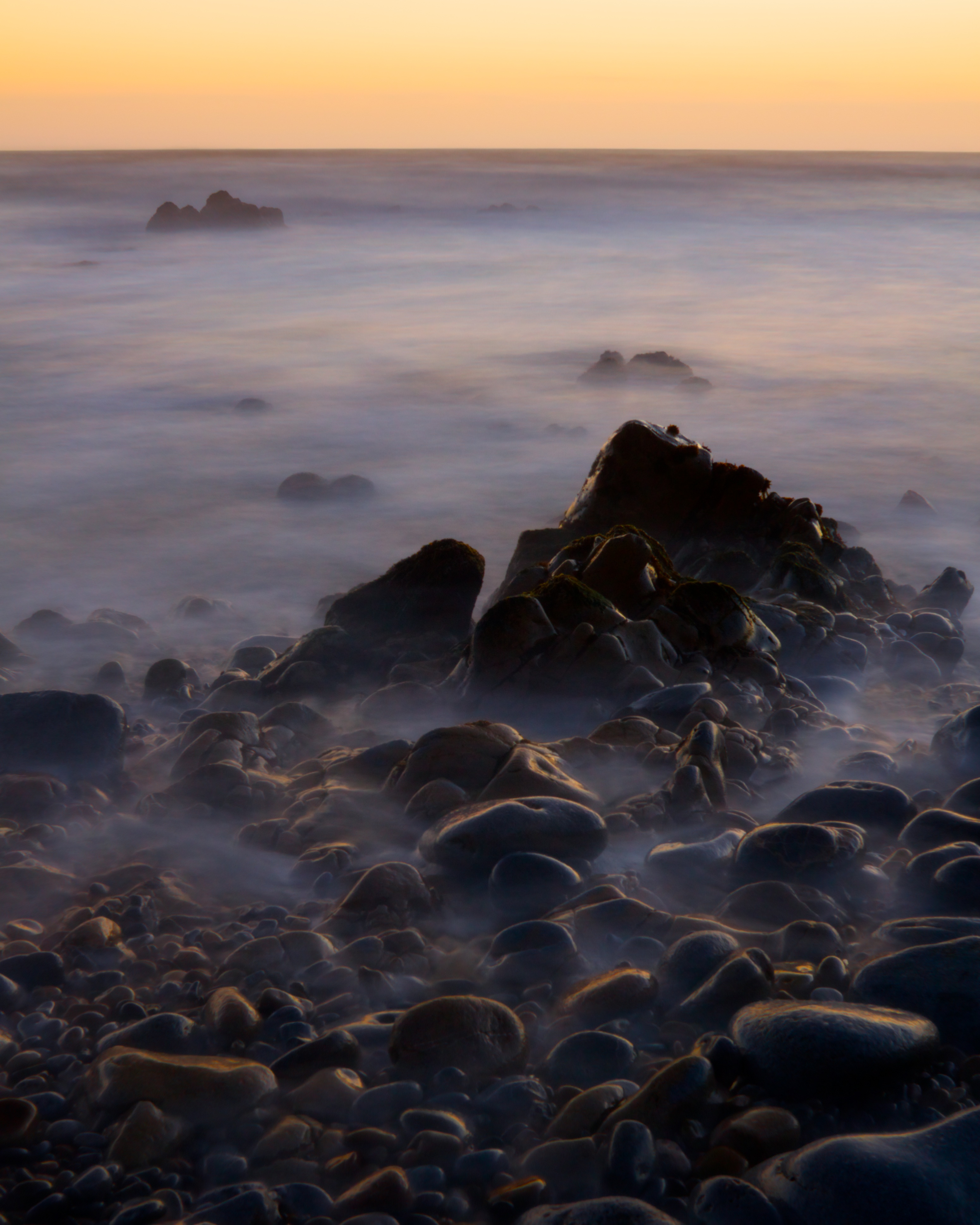 - pescadero beach, CA - golden hour, improved in photoshop with global and local edit - global edit includes white balance, black point, exposure, contrast, curves, cropping and straightening - locally edited the color of the orange sky (blended with gradient in photoshop - f/11 at 30s to keep everything in focus and get the nice water silky feeling - was very cold and got wet waiting for this shot, also saw dead seal and screamed :( | ||