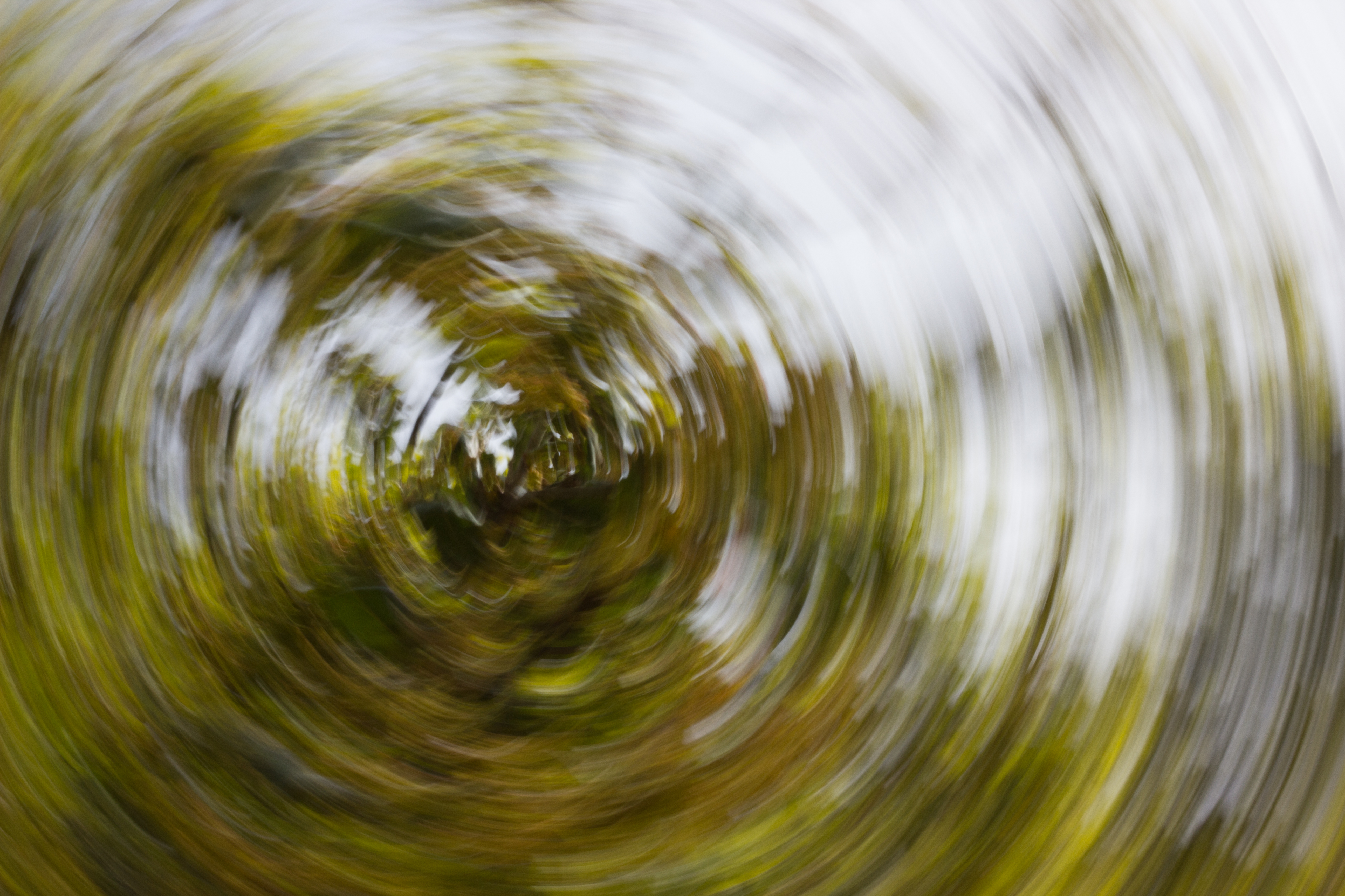 This photo fulfills requirement #2: main subject of the photo must be motion blurred. I basically pointed my DSLR at the sky with a tree in the way, then while the shutter was open, spun the camera around with my wrist. I really like the colors on this one; the green of the tree and the white from the sky mixed together and funneled to a single point. | ||