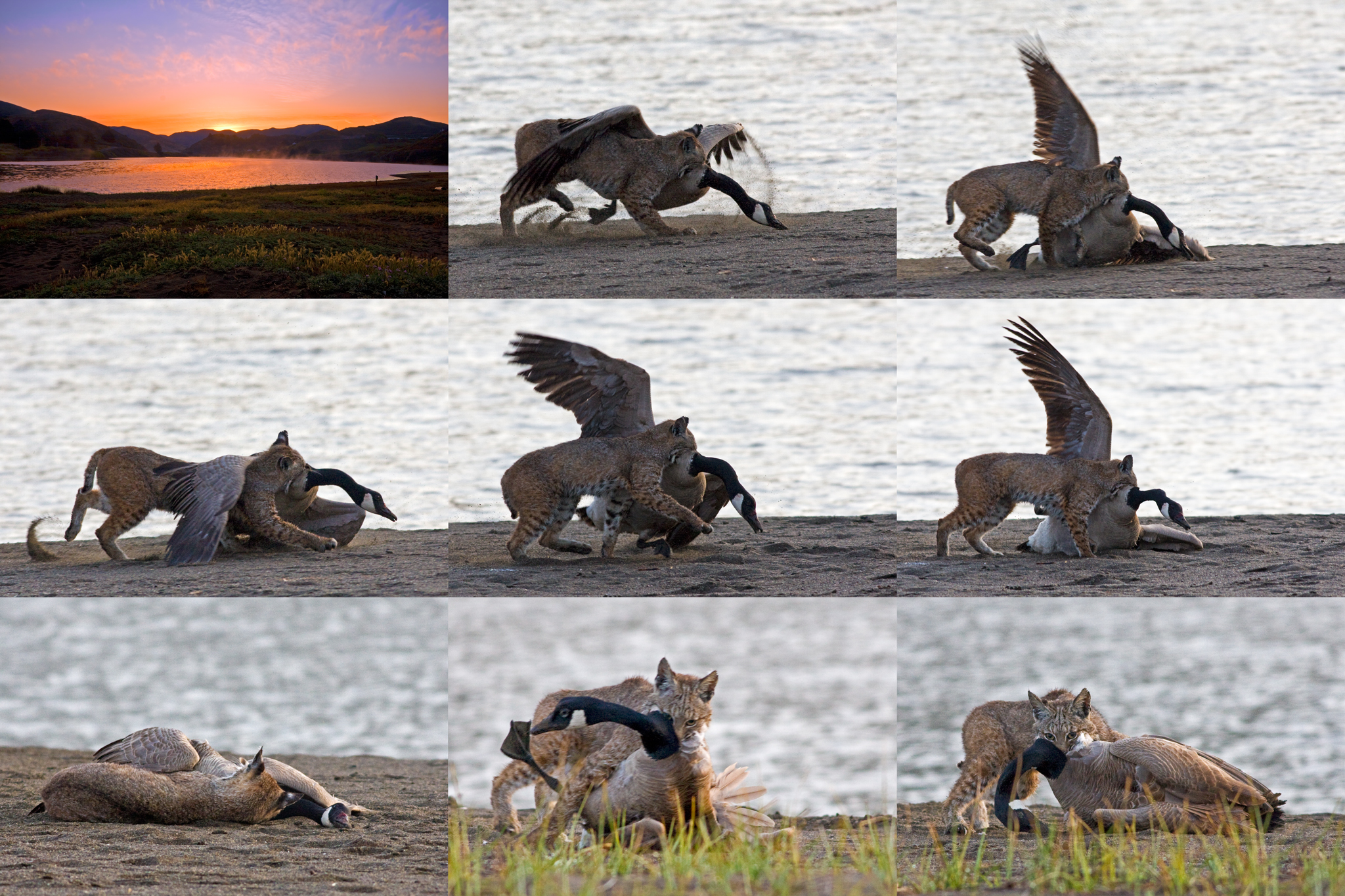 EXIF: ISO-1600(Very low light at about 6.30am) Partial metering Equipment used: Canon EOS 40D, Canon EF 400mm f/5.6 L USM Lens and Sigma 10-20mm f/4-5.6 EX DC HSM Lens Handheld Post processing in CS4 Essence of the image: This series of images depicts a very rarely photographed moment of Natural history. The Bobcat(Lynx rufus) is one of the most elusive predators of the region second only to the infamous Mountain Lion. On this amazing morning at Rodeo Lagoon | ||