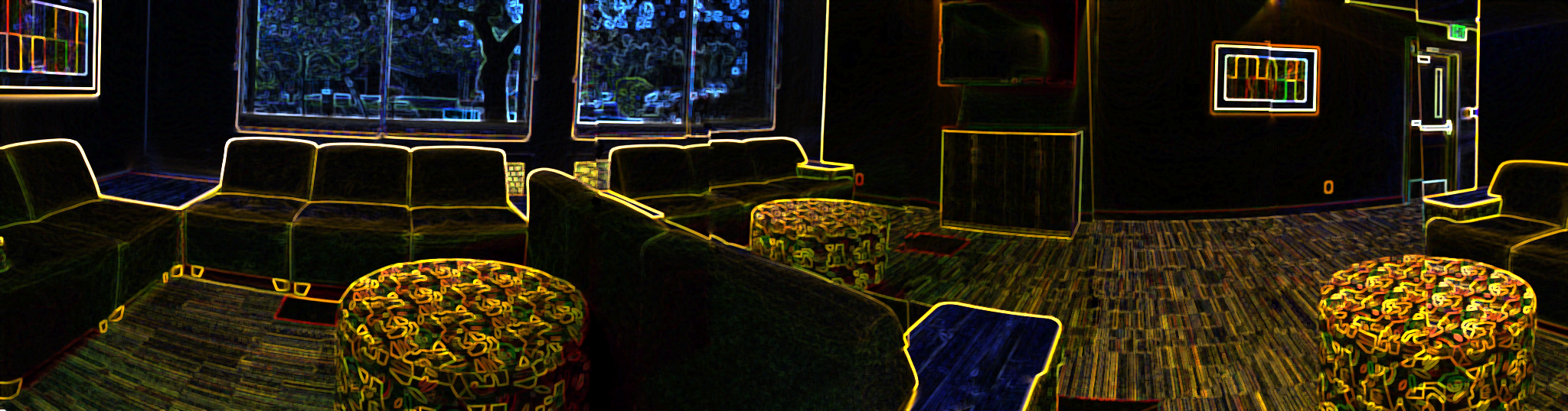 EXIF: f/5.6, ISO-125, EC 0 at 10mm. Exposure time for 1/8 seconds. Equipment used: Canon EOS 40D, Sigma 10-20mm f/4-5.6 EX DC HSM Lens, Tripod. Clicked on manual mode(M) with Partial metering in RAW and Manual WB. Post processing in CS4. Used the Photomerge function to stitch together the panorama. Cropped for composition. Used the glowing edges filter for the effect. Also used the healing brush to fix artifacts of the join. Essence of the image: In this image, I wanted create a dreamy lobby that screams out SciFi. I tried out many different effects in PS before I finally decided to go with this one. The paintings on the walls, the windows and the mounted TV all included in part or whole add character to the image. I first tried a larger pan and also one version that included the ceiling but eventually went with this one as it just somehow seemed more visually appealing. | ||