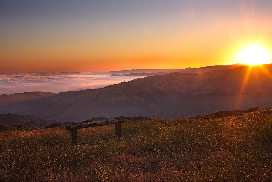 My friend insisted that we wake up before dawn, and I'm very glad that we did because around 5:30 we were able to see the sun rise. There was a wooden railing isolated by itself and around it the wild grass was lit up by the rising sun. It was hard not to find scenery that looked amazing that day, but I really liked the wooden construct with the rising sun and clouds in the background. | ||