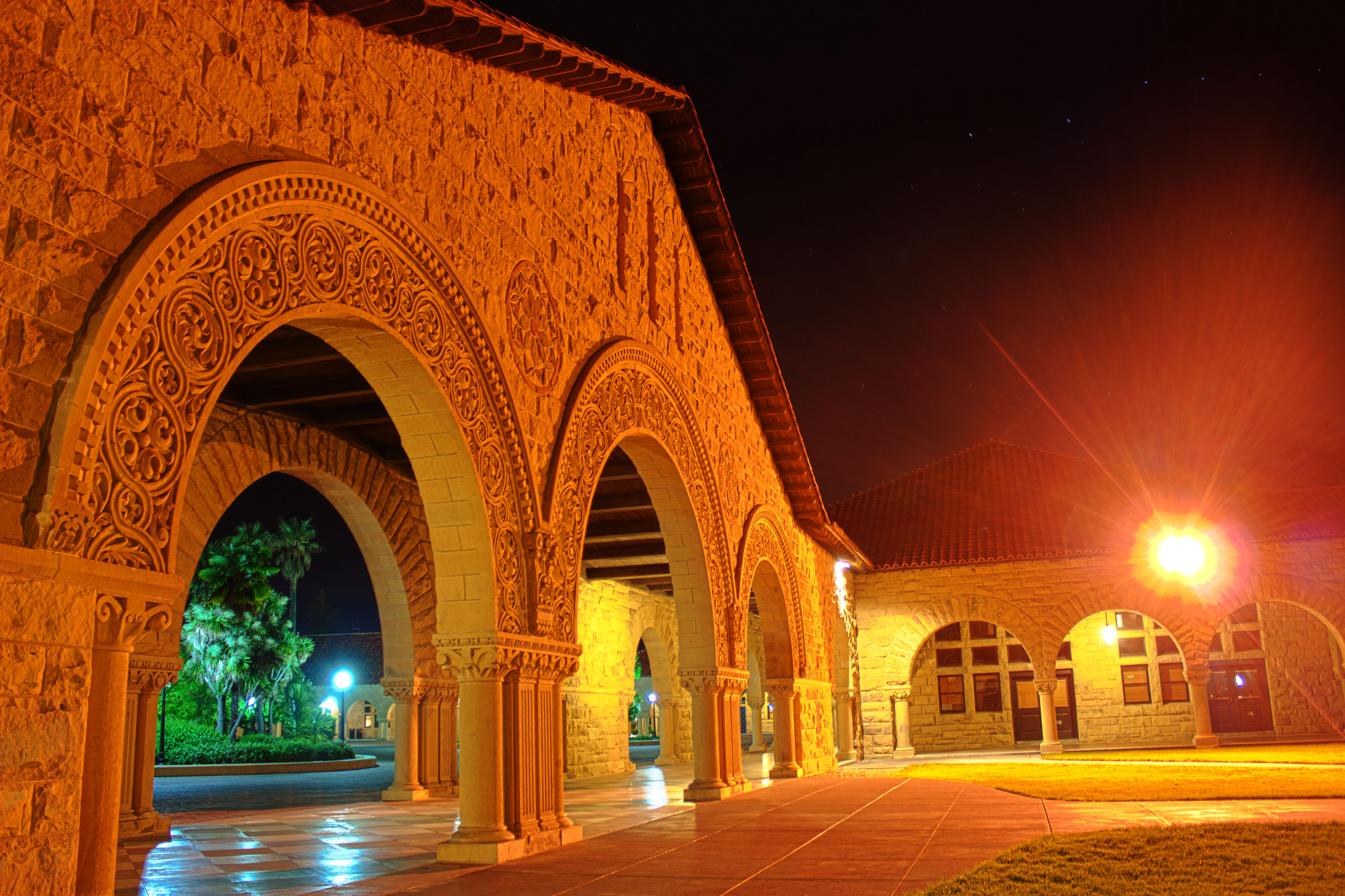 Taken from Christina's camera, by me. (Using jesse's tripod, jesse is the best) 3 different exposures (underexposed, regular, overexposed) and HDR-ed together. I forget what shutter speed was used - I think 15, 20, 25, and the photo information says 25 seconds...yeah. I played with levels and curves to get something i liked - I realize it's pretty saturated, but I liked it a lot (better than relatively undersaturated) I also liked the colour the sky took , reddish (because of the lamp) to deep black the higher we go...I think those are also stars up there! :) | ||