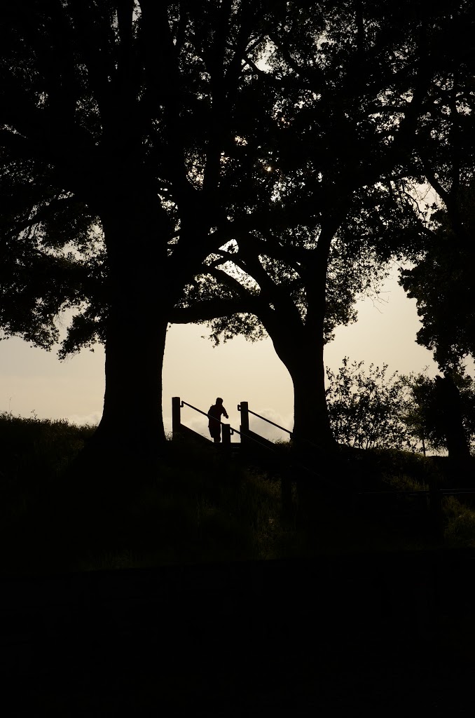 I took this photo as I was getting out of my car at Lake Lag just before sunset. It captures what I think is a compelling juxtaposition of man and nature: in particular, the runner and the handrails framed by the two trees. The silhouette effect adds a sense of mystery to the whole scene, and it emphasizes the solitude of the runner enjoying his evening jog around the lake.