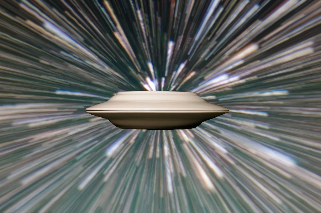 I wanted to used zoom to blur the background which has a "dive in" effect, hence the SiFi warp jump theme. Affter may experiments of how to make star and what should be jumping, I settled on the image of actual starts on my monitor and two saucer on top of each other - "flying saucer". Since I've used zoom, the center or perspective was in the center of the image and I had to adjust the light source in saucers image accordingly - I was in front of the object and above to illuminate bottom less to much my recollection of the movies. | ||