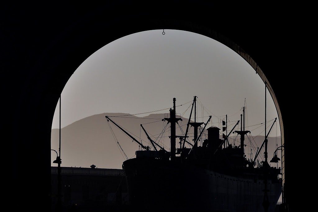 I shot this photo at Pier 39 in San Francisco. It is a photo of a ship waiting at the harbor. I cropped the original and also decreased the contrast to get rid of unnecessary detail and just leave the photo with the silhouette of the ship. As far as the camera settings are concerned, I used D90 with an 18-200 mm (a lens I don't like but have no other choice over at the moment) and ISO 200 (min for this camera). I could have closed the aperture further, but f/14 was good enough for the required depth of field for this photo. | ||