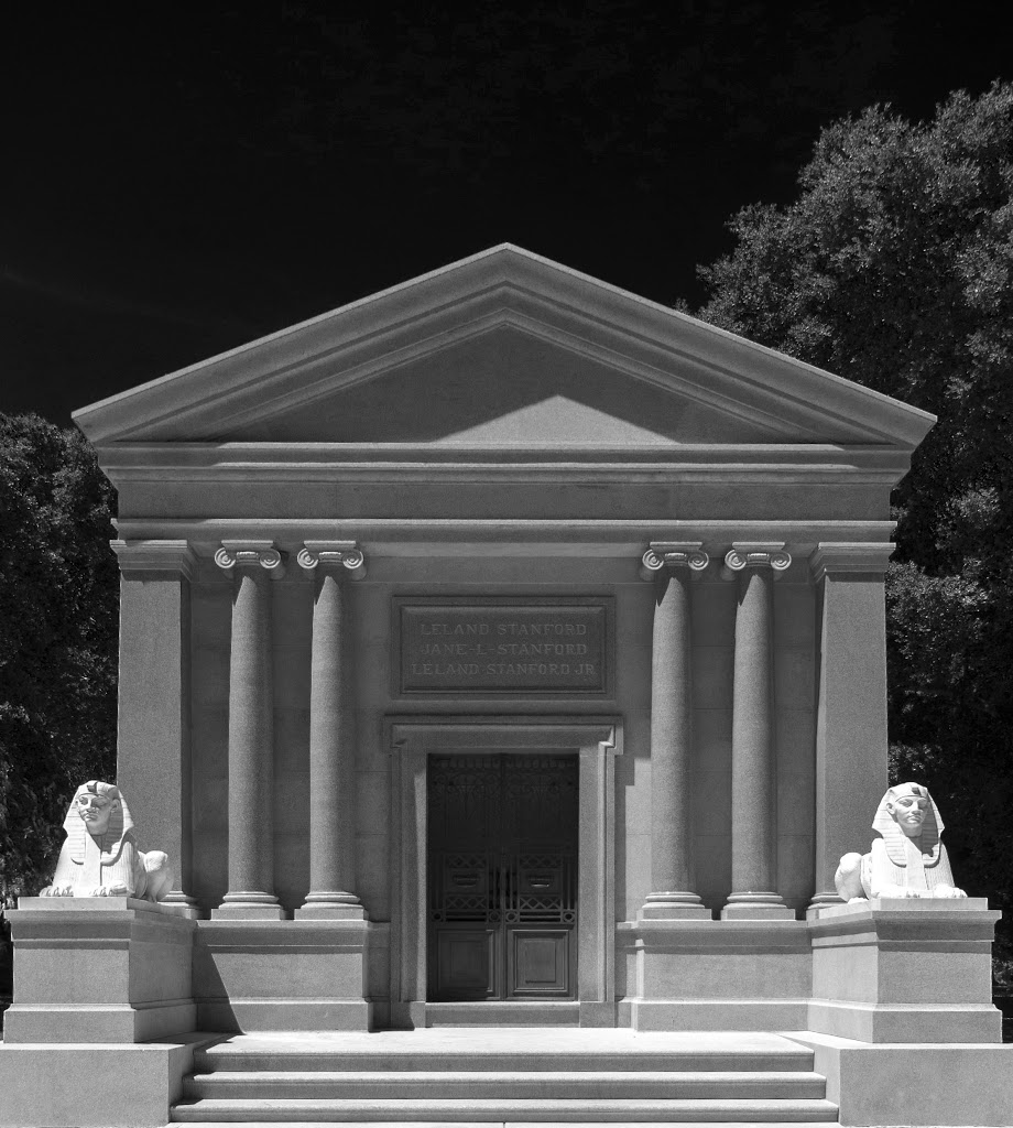 I took this photo of the Stanford Mausoleum on a pretty bright day, so the ISO had to be kept low and the shutter speed relatively fast. I thought the original image was relatively boring, so I did quite a bit of post-processing with it. First, I made sure that it would fulfill the "no vanishing point" requirement and fixed the perspective to make the pillars parallel. I then cropped the image tighter around the main structure and converted it to black and white using the Channel Mixer function. To make the shot more dramatic I took out most of the blue channel, making the sky look dark and lending an eerie feel to the photo | ||