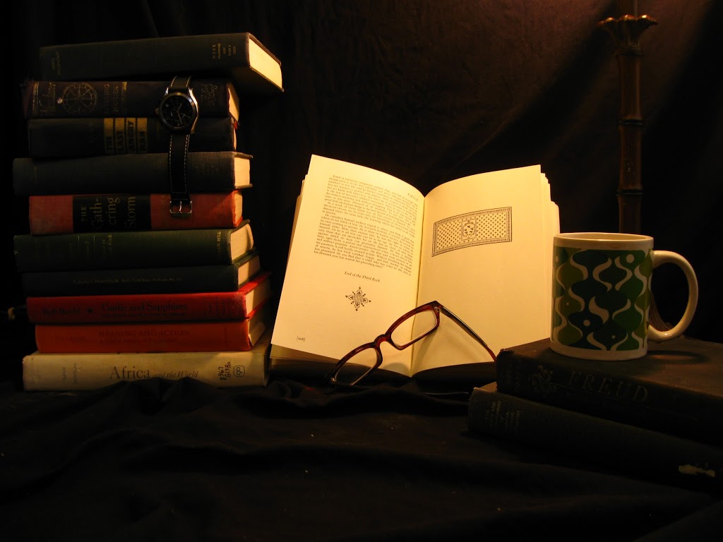 The theme of this photo is ambition in the quest for knowledge. I tried to portray the ambitious endeavor of reading such a large stack of books. For the background, I used a large black sheet. In addition to the lamp you can see at the right of the picture, I needed a small additional light beyond the left side of the frame to better illuminate the stack of books and the watch. I also changed the white balance to give the photo a warm, natural look. | ||