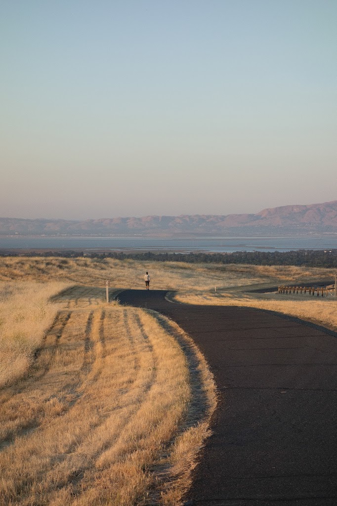 This is a picture of an S-curve, taken from the Dish. I used a small enough aperture to keep everything in focus. I used the curve as a guiding line through the landscape, toward the person in the middle of the photograph. I included empty sky to balance the bottom half of the image.