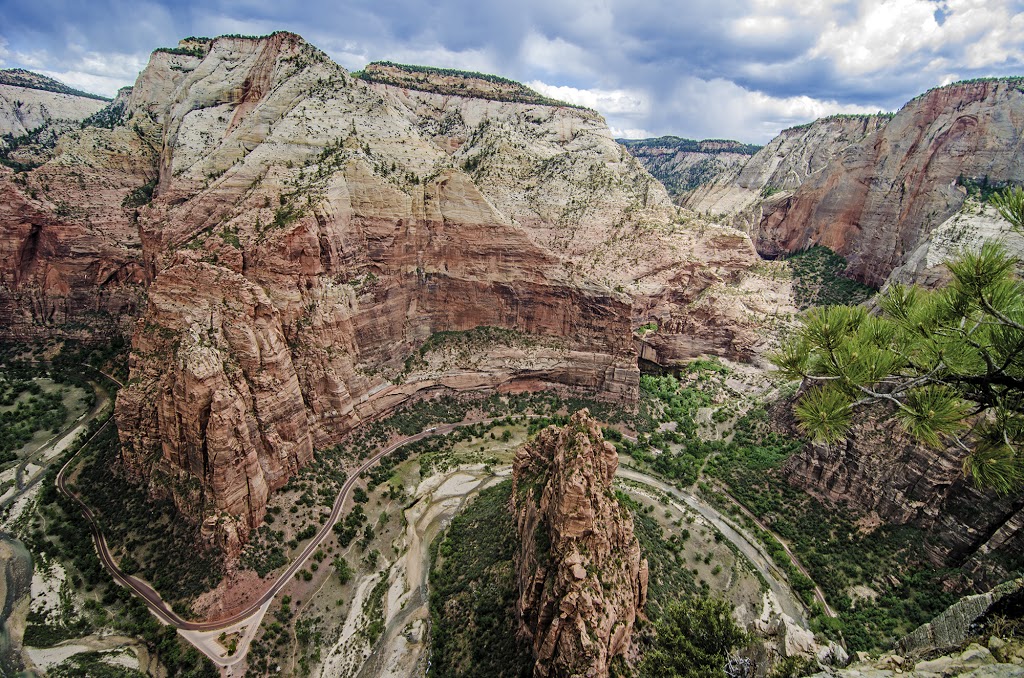 Another "S" curve taken enroute to Angels' landing peak. The cliff edge enabled me to take this really disorienting picture of the surrounding peaks and deep canyon. It was a really scary hike and was not recommended for people with moderate fear of heights ! No crop was done. Played with exposure, vibrance and clarity. | ||