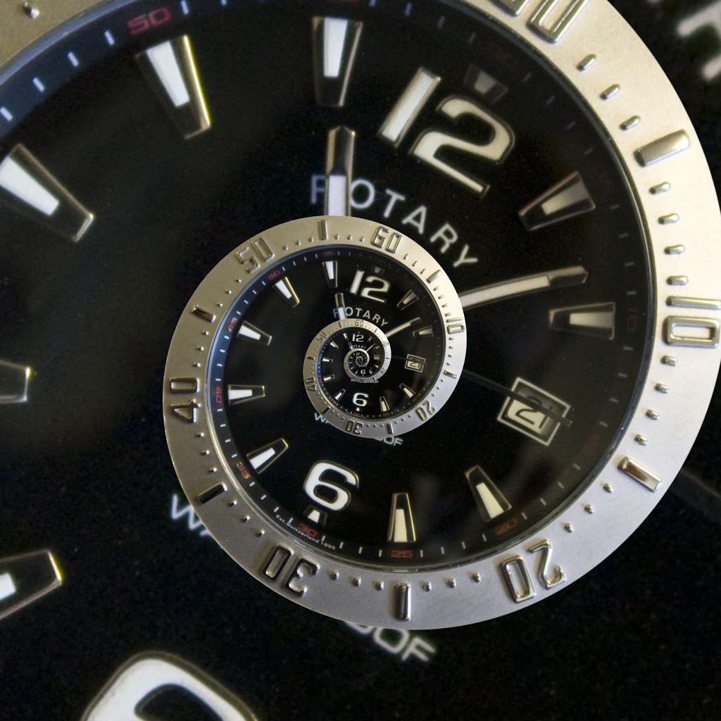 For this image, I took a photo of a watch in my room, under basic overhead lighting conditions. I brought it into Photoshop and cropped out everything except the watch face itself, using a circular marquee tool. Then, I used the Photoshop Pixel Blender filter designed for the Droste effect. The filter basically does this kind of manipulation almost completely automatically. The only things I had to change were how much rotation and how many levels of "recursion" I wanted in the final image. | ||
