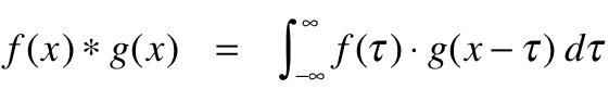 where * means convolution and · means ordinary multiplication. For functions of a discrete variable x, i.e. arrays of numbers, the definition is: