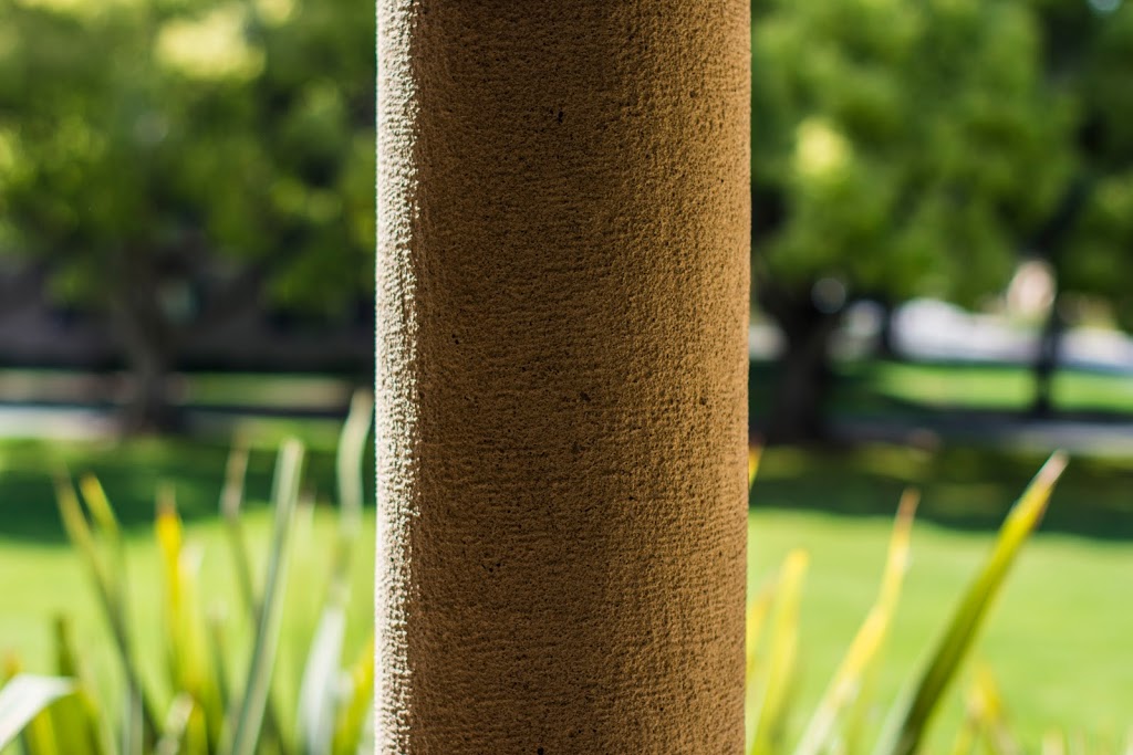 This photo fulfills the badly composed criteria, with the column placed directly in the center of the photo. Especially with the light hitting one side of the post, it would've made sense to place it on either side of the image, as an asymmetrical location would play well with the asymmetrical nature of the stone.
