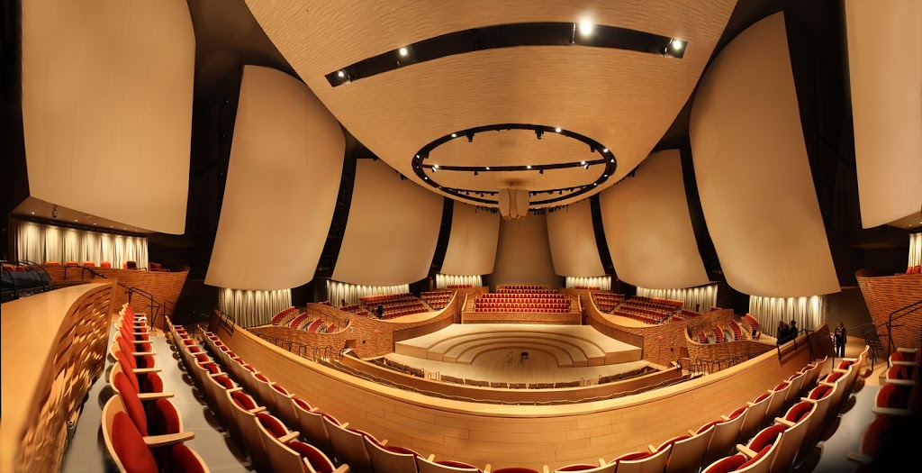 This image of Bing Concert Hall fulfills requirement #5 (interior panorama). While I didn't get to go as far to the right with this panorama as I would have liked to (I got kicked out by the usher in the lower right-hand corner), I decided to go with this one anyway since Bing's design makes this image a lot cooler than other possibilities for this requirement I had in mind. To take the pictures, I opened the aperture as wide as possible (3.5) and set the ISO to 800 to get a reasonably fast shutter speed. I steadied my camera on the ledge that you can see on the left-hand side. Post-processing was difficult because the photoshop's vignette correction would freeze whenever I tried it, meaning that I had to blend the layers by hand with clipped adjustment layers, layer masks, and a paintbrush. I also used the clone tool to fill in a few bits that I missed. As far as white balance goes, the image is a bit on the warm side, but since this is what I remember it looking like, I decided not to adjust it.
