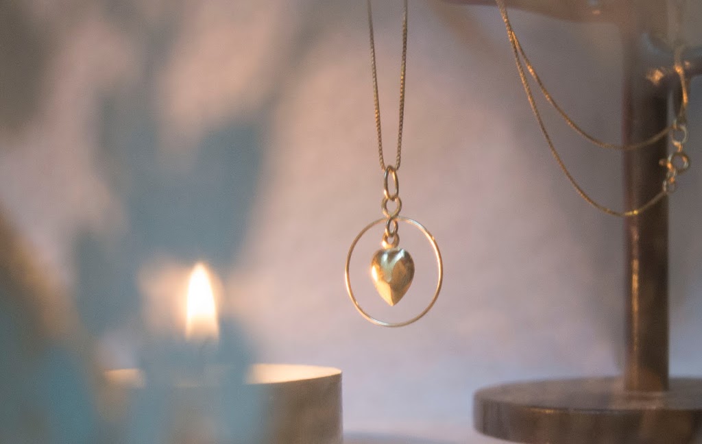 I added the candle for the lighting because I thought it would make a nice reflection in the gold of the necklace, as well as in the piece of paper that I used for the background. To prop the necklace up I used a jewelry tree, which I wasn't sure if I would keep in the image but I think the hardness adds a nice balance to the darkness of the lace on the left side of the image.
