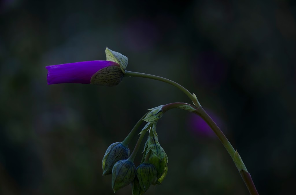 Also meets requirement 4. I took this photo in the cactus garden, using my regular D5100 along with a extension ring borrowed from Rito. I used a large aperture to ensure shallow depth of field that would capture just the lone flower stem. Shutter speed was increased to reduce exposure, complementing the downtempo purple mood of the photo. I like how purple is a theme in both the background and the foreground, and how light green appears in splashes on both the smaller bulbs and the blooming flower. | ||