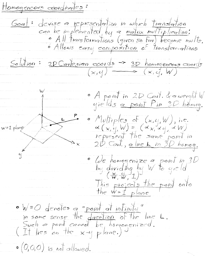 Thus, the 2D Cartesian coordinates occupy the W = 1 plane in 3D homogeneous space.