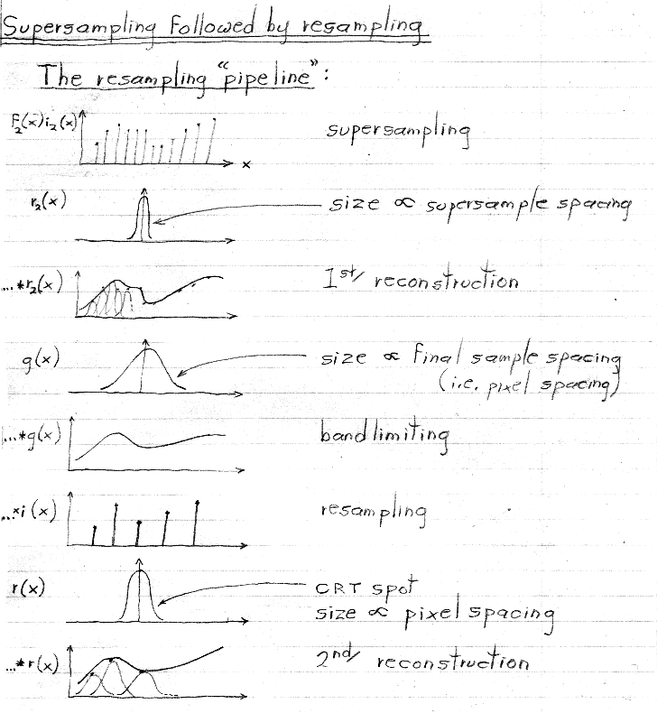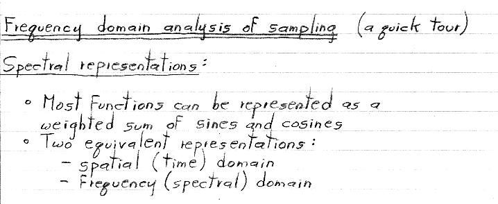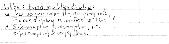 I didn't have time in class to show you what supersamping and averaging down looks like in the frequency domain. If you're interested, look at this handout from CS 348B.