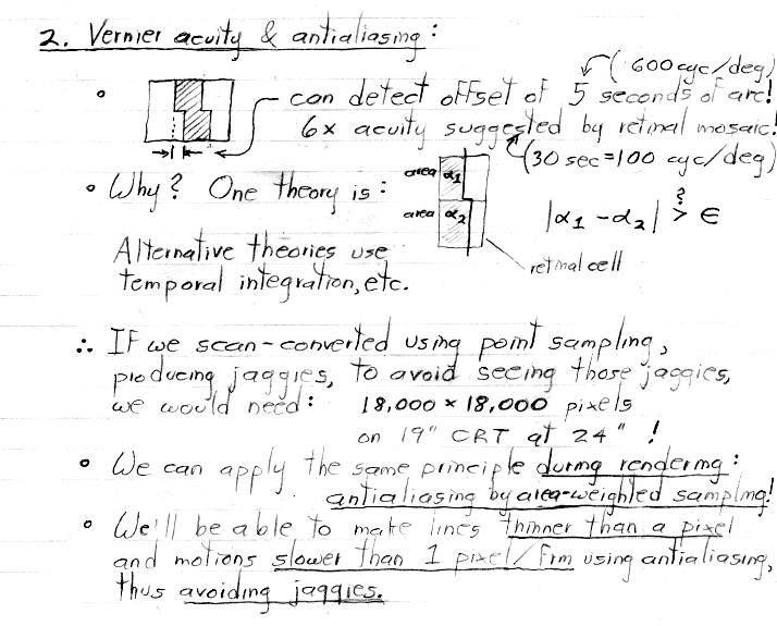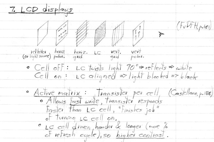 Press here for the Powerpoint slides I showed in class about triads and pixels (HTML or PPT or PDF). For now, ignore the rightmost two columns on the second slide. We'll talk about subpixel font rendering technology after we've covered rasterization and antialiasing; it will make more sense to you in a few weeks than it would now.