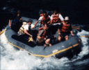 The first test image (top row) is synthetic, so it should require the most number of bits to look good. To my eye, the solid glass cone lying on its side (upper-right corner) begins to exhibit quantization artifacts, i.e. contouring, at 5 bits. The second test image is an optically scanned photograph taken by a film camera. To my eye, the linear luminance version begins to show quantization artifacts at 5 bits, but less severely so than the synthetic image, probably because of film or digitization noise. Look in particular at the top surface of the leading edge of the raft. The gamma-corrected version (original1/2) exhibits fewer artifacts, and for the sake of exaggeration the inverse corrected version (original2) exhibits more. The third image is an optically scanned hand-painted cartoon background. To my eye, it looks fine at 5 bits, but begins to show artifacts at 4 bits. This reduction in the number of bits is at least partially due to the more random nature of the hand painting. Finally, the fourth image is an optically scanned pencil drawing. It does fine down to 3 bits, due mainly to the narrow spatial extent of the "zone of antialiasing", i.e. of midrange gray pixels, over which the quantization occurs. This same property allows text to be antialiased using few bits.