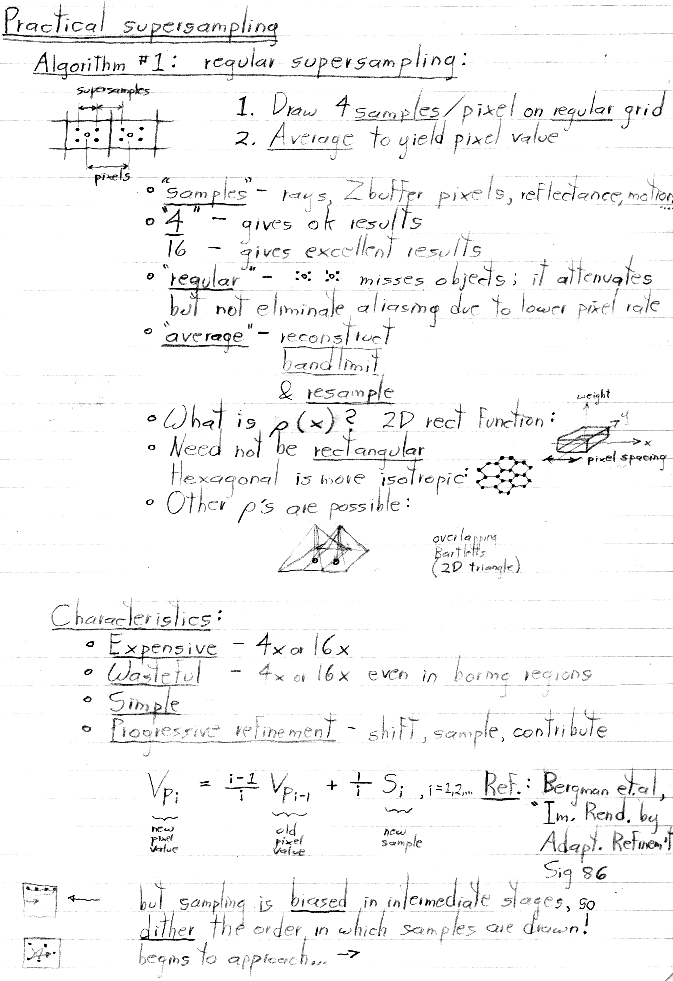 I don't have time in this course to show you what supersamping and averaging down looks like in the frequency domain. If you're interested, look at this handout from CS 348B.