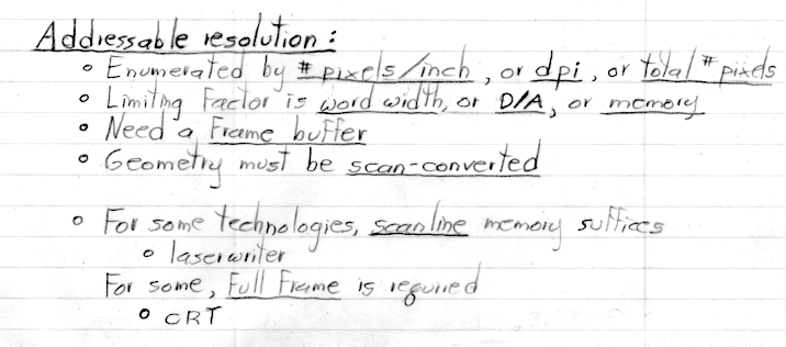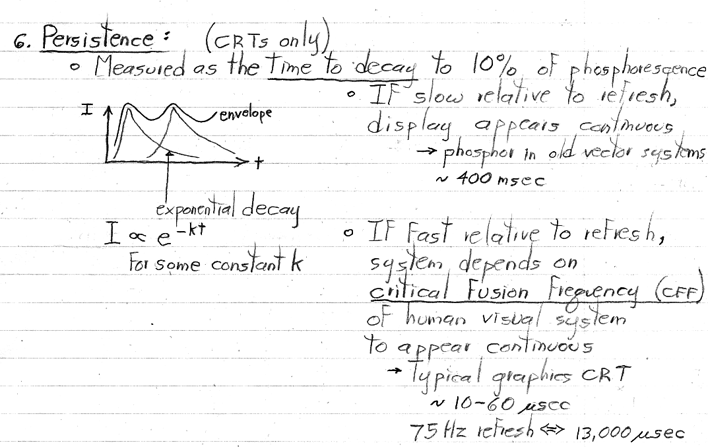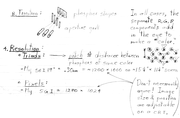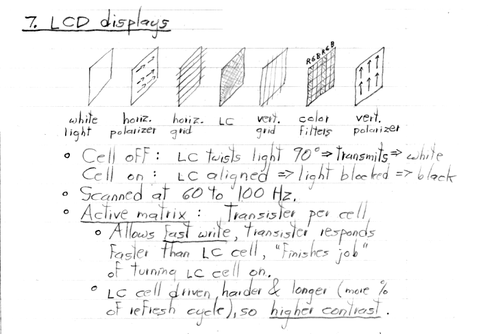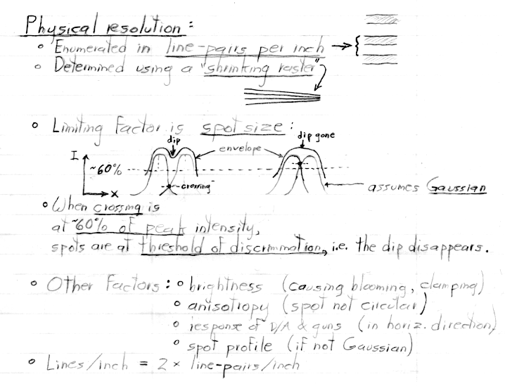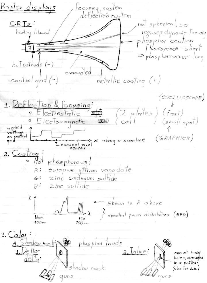Note: There is more detail in these notes than I covered in my lecture today, mainly on the topic of CRTs. As I mentioned in class, it is no longer worth spending much time on that increasingly obsolete topic. You are not responsible (e.g. on the exams) for material I don't cover in class. For most classes, the written notes will follow the lectures more closely.