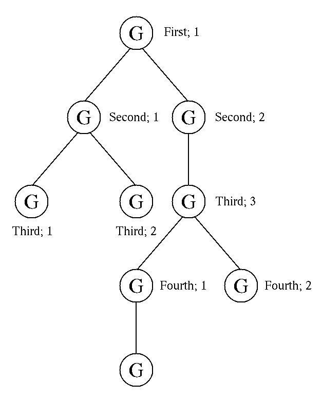 /usr/class/cs248/assignments/assignment3/examples/navigate.scThe corresponding scene tree diagram will prove invaluable in understanding how the arrow keys modify the selection. All the nodes in the scene tree are Group nodes, and all but the very bottom one are named; in the diagram, the name of each node appears right next to, or below, the node.