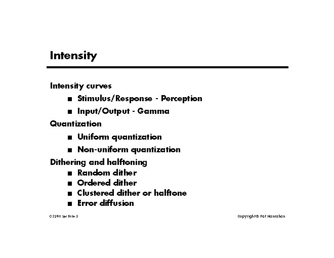 Lecture 3: Intensity and Quantization