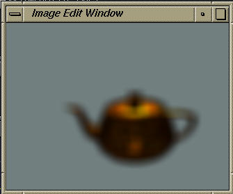 We would like to apply a time varying blur to the teapot. Fortunately the blur operator has the blurring radius hooked up to the graphical time varying input selecter. I chose ramp up from the timeline menu so that the teapot will range from no blur at the start of the movie, to very blurred at the end. Of course I could draw by hand a curve representing the amount of blurring at each time step if I desired.