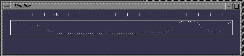 The remaining window is the Timeline window. This is the window shown at the very top of this page. There are two main interactions in this window. At the top you can see a series of hatch marks. Each of these represents one frame in a movie. Clicking on a different hatch mark, will change your current viewing to a different frame. You might be using multiple movies. They all stay in sync. When you click a new frame, everything updates. The second item of interest is the box below the frame selecter. This box is the time varying parameter input . It allows you to graphically control a floating point parameter that is input into all plugins. Its range is 0.0 to 1.0. For example you might use it to control the amount of blurring to apply, or the ratio of images A and B in a blending operation. By changing the shape of this input, we can have plugins that vary their operation over time. There is also a menu on the right mouse button which allows you to select certain preset shapes of the time varying paramter.