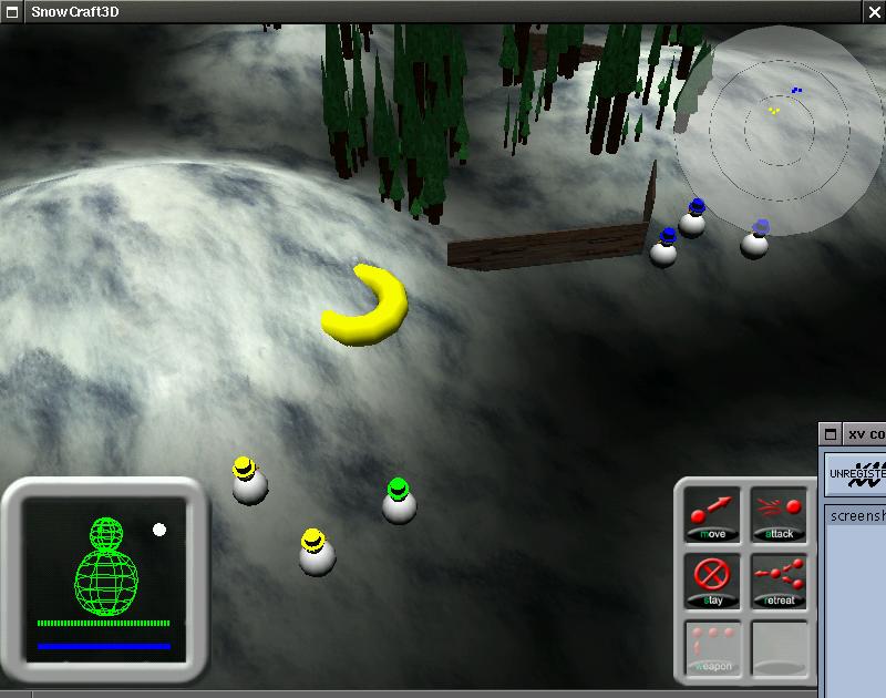 SnowCraft3D is a real time strategy game fought between teams of snowmen. Win by destroying the enemy base. You can use your base to build new snowmen and research advanced snowball technologies.
