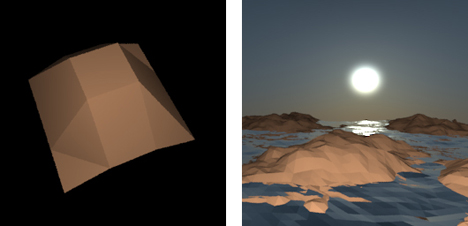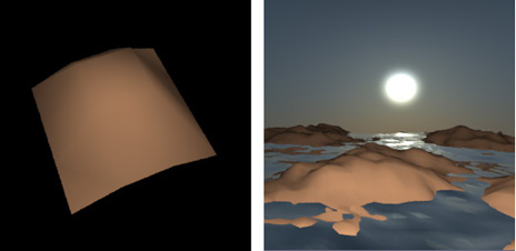 terrain in scenes like landscapes and seascapes. Terrain is often represented as
