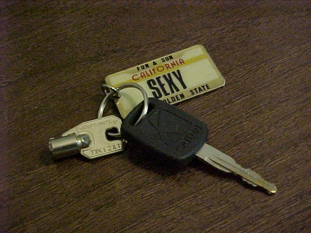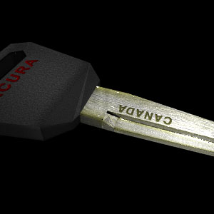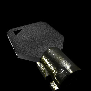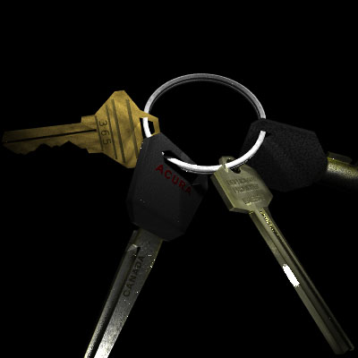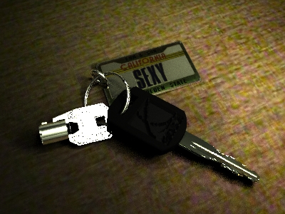 Ashley and Alan implemented several features for their "sexy" key rendering. Their scene was totally hand rendered. They implemented full CSG to get the details of the keys right, and bump mapping to add the text on the bike key. They added height fields, with a 'cookie-cutter' style option for chopping pieces of geometry out of a scene. The also added a material mapping ability which modulates the material properties of a surface. Much like a texture map modifies the color of a surface, these maps allow them to modulate the reflectivity, specularity, and diffuse characteristics of a single surface within a map.