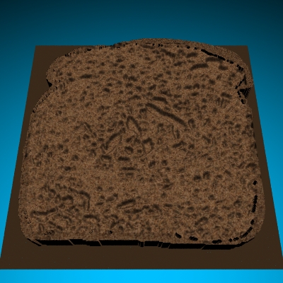 Using height fields, Shuo-Yen Choo was able to produce some interesting bread images. He also generated a texture map based on random points from a scan of a piece of bread.