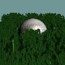 The scene uses a mixture of some very nice rendering techniques. They implemented depth of field to give the background the proper blur. They also implemented procedural and textural bump mapping. The textural bump mapping was used to give the leaves a more natural look. The procedural bump mapping used a novel two pass algorithm. The first pass was to determine the location of the centers of the bumps based on user specified pitch and the three-dimensional distance between points sampled on the same object in the image. The second pass was to find the closest bump center for the hit point and then to bend the surface normal at that point to match the normal of the corresponding point on a sphere. The zoomed in results are quite nice.