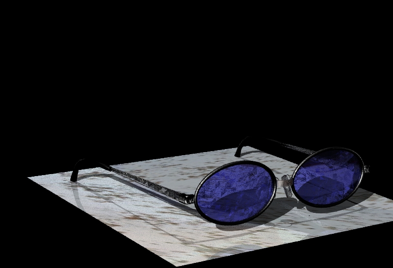 Mark modeled a pair of sunglasses for his project. He implemented environment mapping to get the reflections in the lenses. He also added bump mapping to get the legs of the sunglasses to look right. Another feature of his project was an angular dependence on the transmission/reflection ratio of the lenses.
