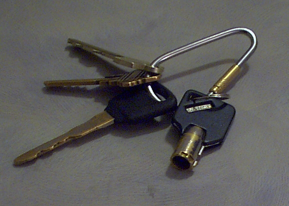 Mike and Haobo rendered a well used set of keys. They implemented a number of interesting techniques to give their pictures a realistic feel. They implemented a simplified CSG model, and added a masking primitive to help stamp lettering in the keys. They also added noise functions, bump mapping, and several different surface shaders to their project.