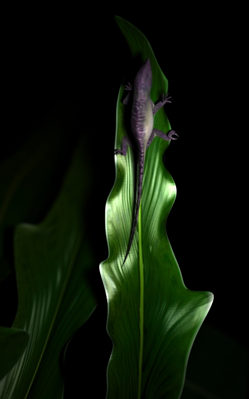 Tanya and Victor won first prize in the rendering competition this year for their outstanding picture of a lizard on a leaf. The lizard and leaf were modeled in 3D Studio Max using NURBs. Many people had a hard time distinguishing the photograph from the rendering during the competition.