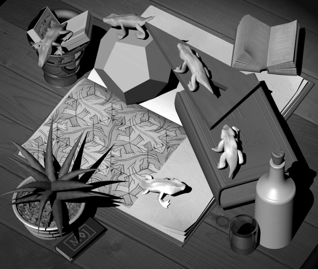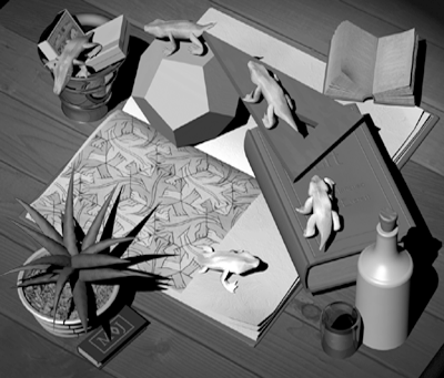 projection. Escher drew "Reptiles" with an overhead viewpoint