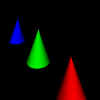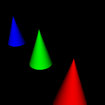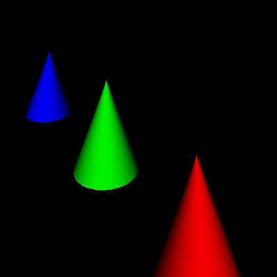 directly at one of the cones.